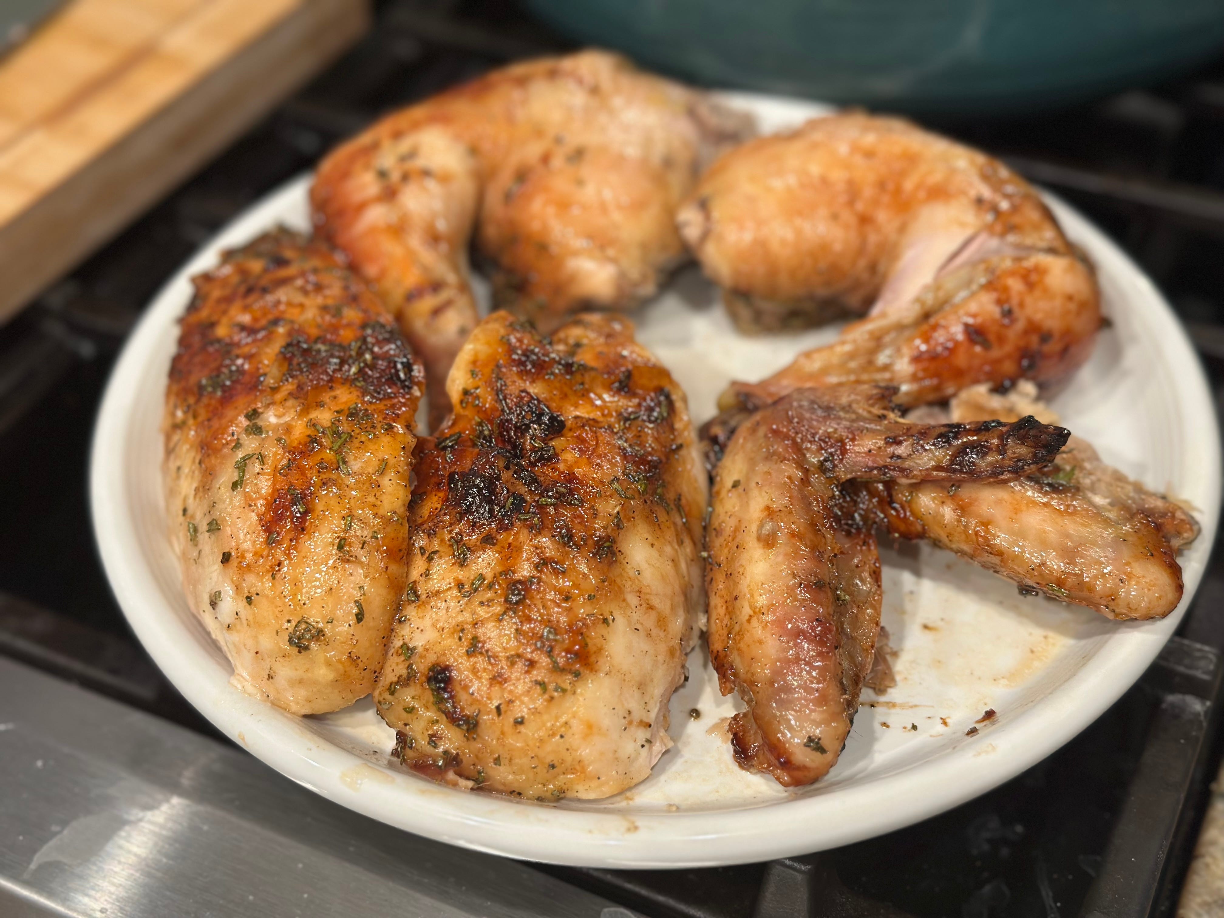 I did not move the chicken to a plate with the veggies I roasted. I did not move the plate to a table. I did not sit down. I did not— my mother would be horrified to hear— use utensils of any kind. I ate this chicken with my fingers standing at the stove and I do not regret…